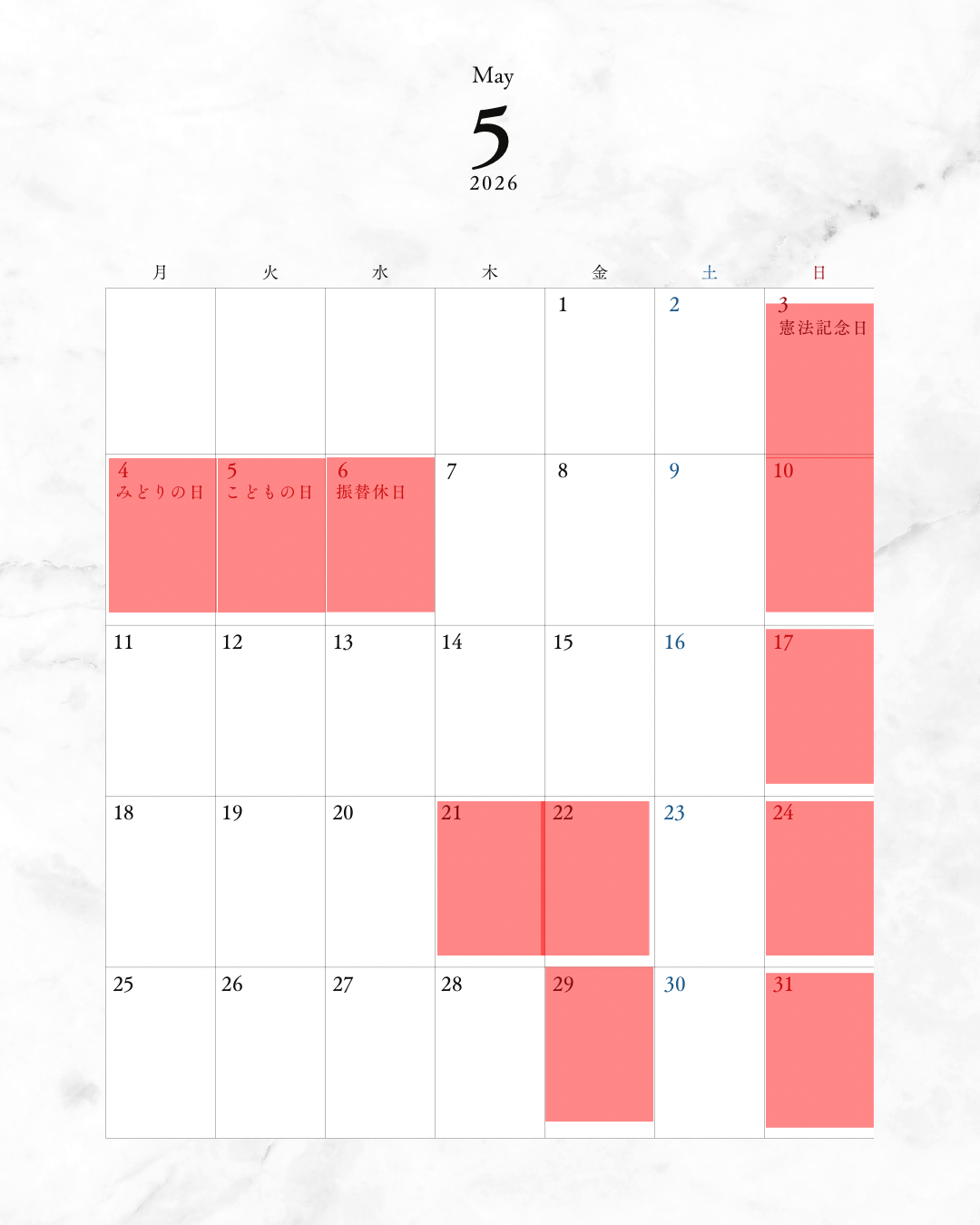5月の定休日のお知らせです。